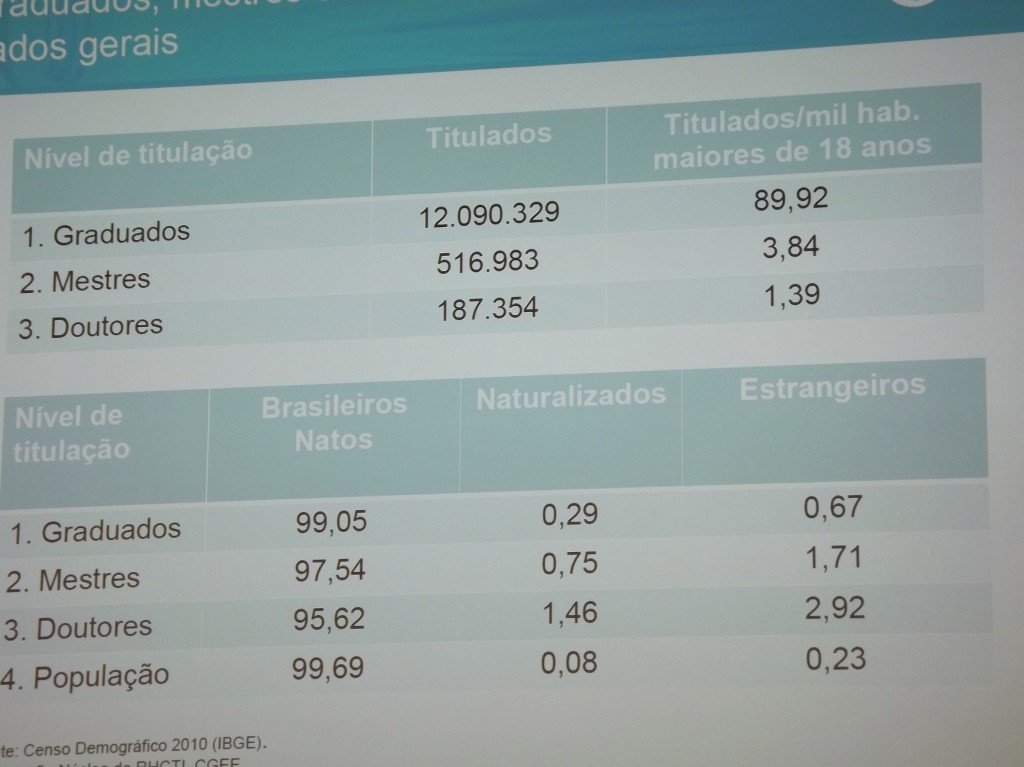 Diversos professores frisaram a necessidade de maior número de pesquisadores brasileiros. Muitos explicaram as possibilidades de apoio de aos pesquisadores vindo de companhias e universidades estrangeiras; o que certamente é um incentivo.