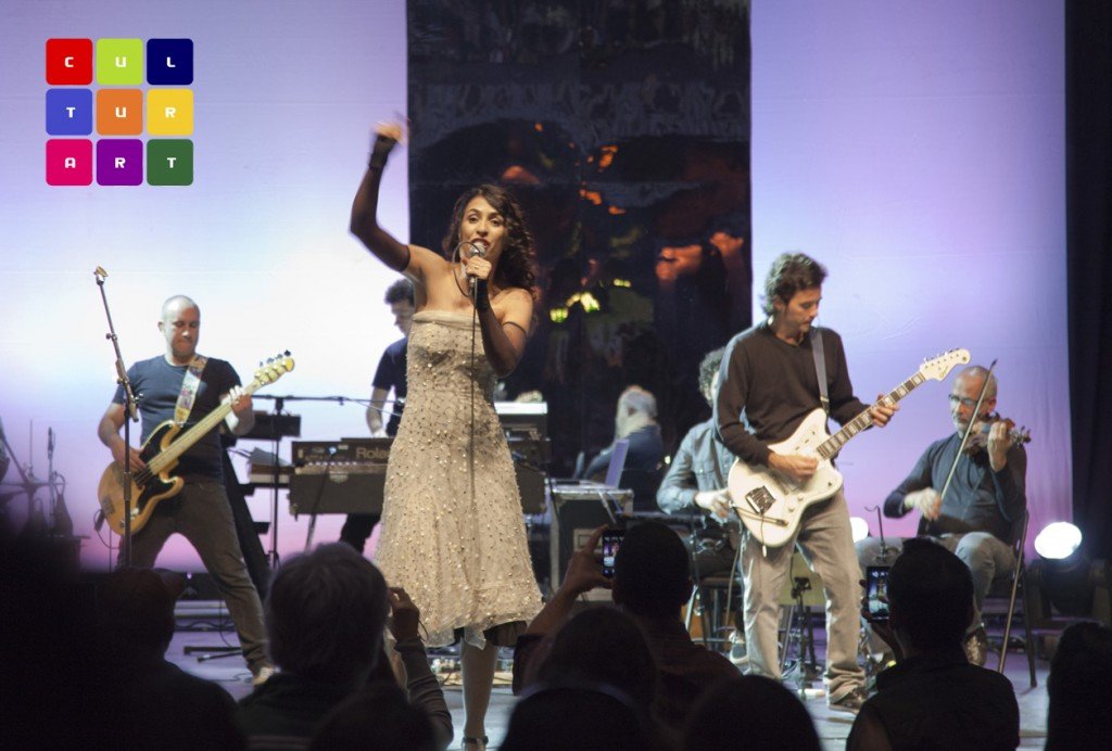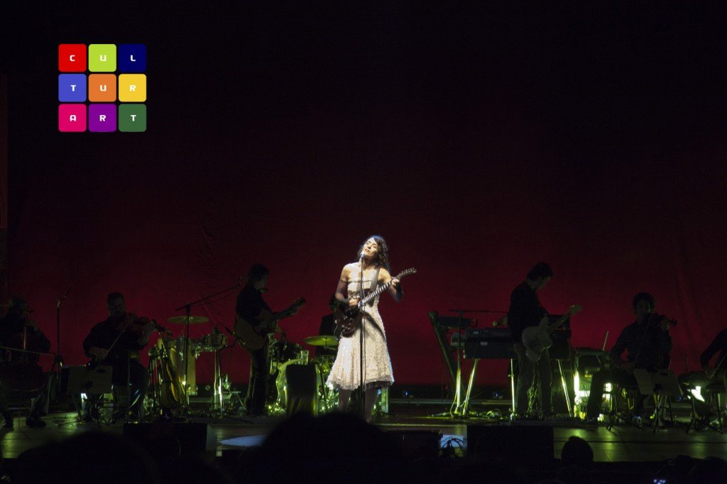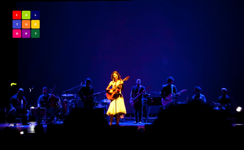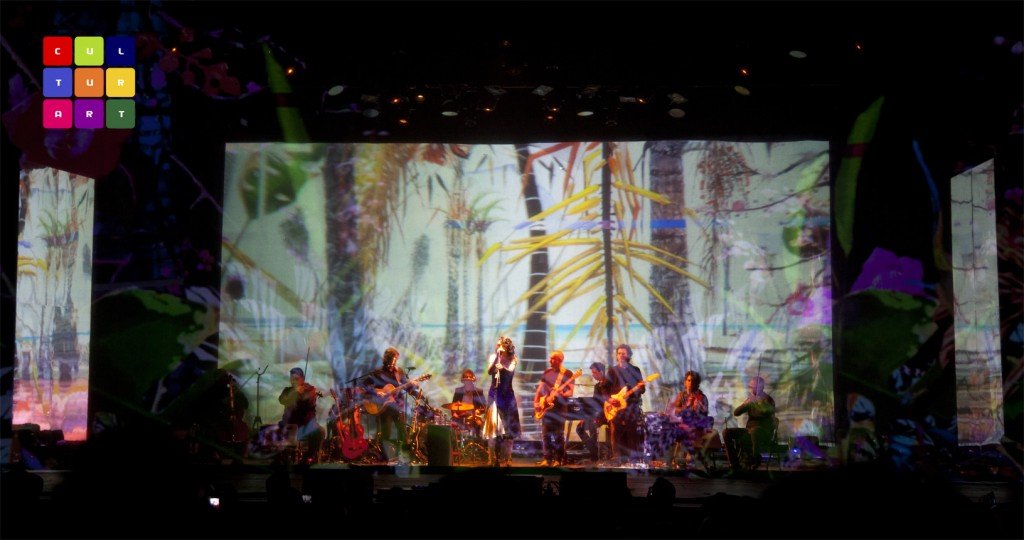 At the start of the show, nine musicians were on stage, Marisa in the centre-front, a black transparent screen inbetween the stage and the audience and Maris’s voice opened the show in darkness. And so, the screen went up, everything transformed, colours were reflected across the stage and the first song “O que você quer saber de verdade” began, a song from the new CD which talks about freedom and peace. The show was hot, from beginning to end, even more so though at the end when many could no longer remain in their seats and got to their feet to sing along with the star.