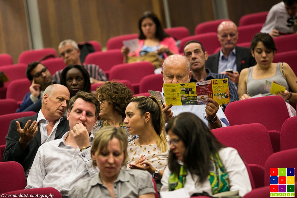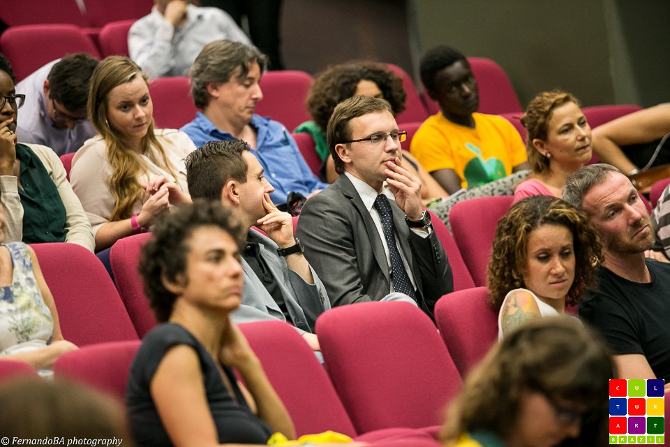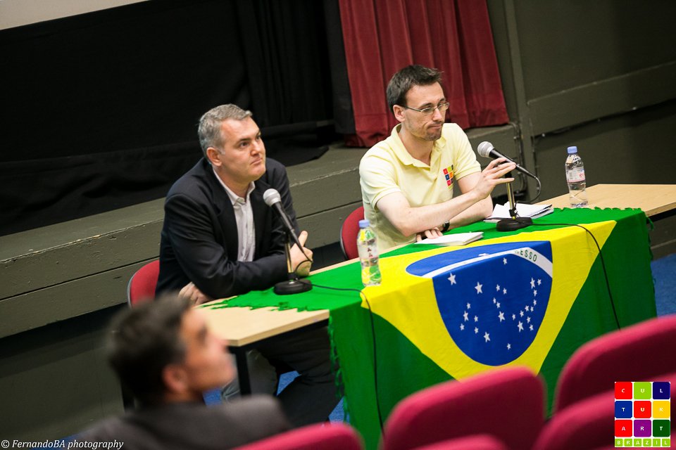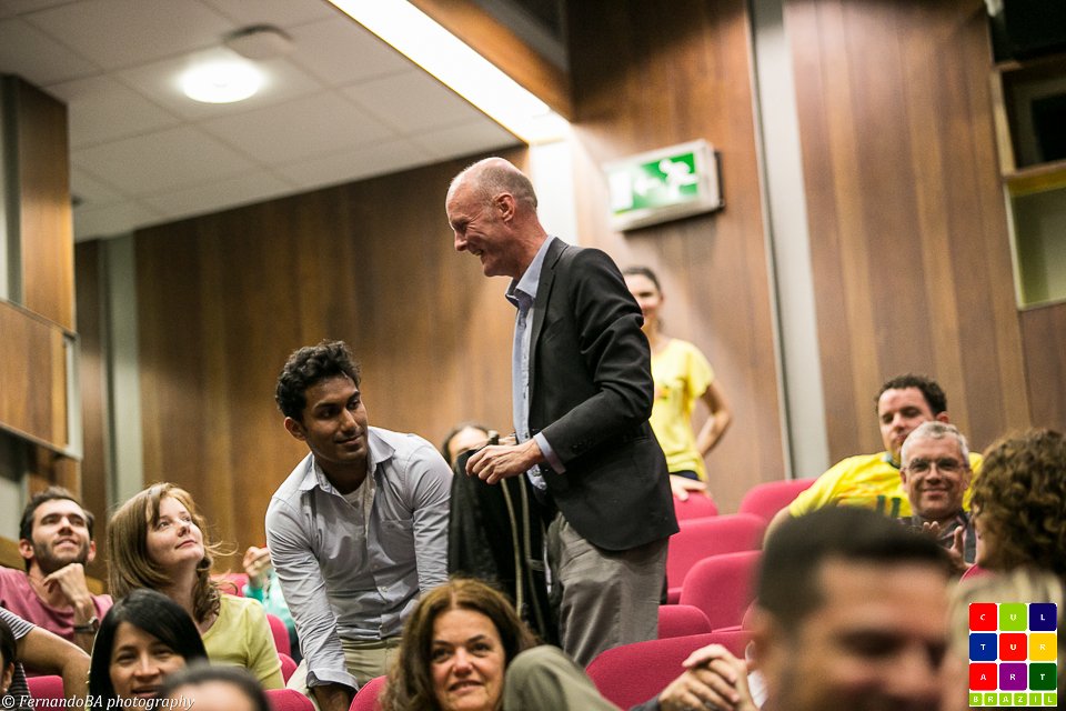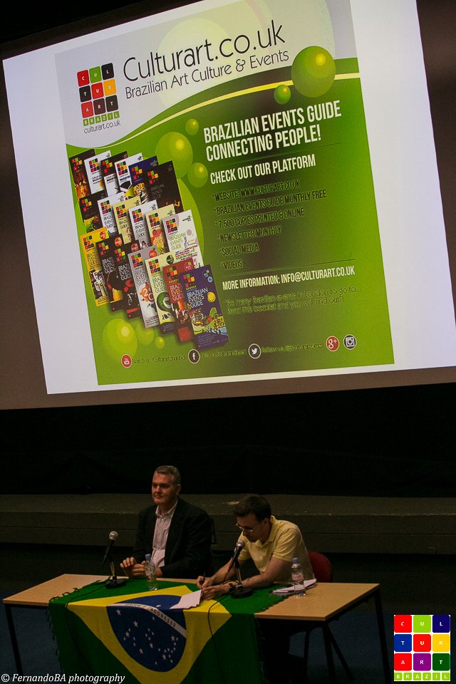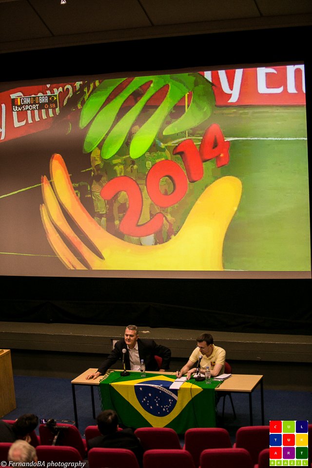 No passado dia 23 de junho, o King’s College recebeu leitores e fans da Culturart para o evento “2 in 1”, que contou com a exibição do Filme “Orgulho de ser Brasileiro” e com a transmissão ao vivo do jogo da Copa do Mundo entre o Brasil e Camarões. A abertura do evento foi feita pelo diretor do King´s Brazil Institute, Anthony Pereira, que falou da parceria entre o Instituto e a Culturart; e pela diretora da Culturart, Shirley Nunes, que destacou o fato do filme ir ao encontro de um dos compromissos da revista: apoiar profissionais independentes que produzem arte e cultura brasileira no exterior. Com notepad, lápis e o Brazilian Events Guide (link), exclusivos da Culturart, e dois flyers em apoio ao Amazon Film Fest link and Brasiliance link, ambos eventos que acontecerão em Julho, no Rich Mix; o público bastante diversificado (brasileiros, ingleses, espanhóis, italianos, etc) estava bem equipado para o filme.